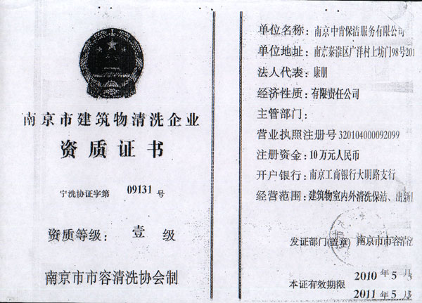南京保潔公司注冊(cè)資金10萬元,是江蘇省家庭服務(wù)協(xié)會(huì)會(huì)員單位,江蘇省家政服務(wù)業(yè)分類執(zhí)行標(biāo)準(zhǔn)起草制定單位,先后被評(píng)為江蘇誠(chéng)信服務(wù)先進(jìn)單位、南京是家政服務(wù)定點(diǎn)培訓(xùn)單位、南京市十佳建筑物清洗企業(yè)、南京市誠(chéng)信示范單位、南京市鼓樓區(qū)三信三優(yōu)單位。董事長(zhǎng)康朋是江蘇省家庭服務(wù)業(yè)協(xié)會(huì)副會(huì)長(zhǎng)、江蘇省家政服務(wù)分類執(zhí)行標(biāo)準(zhǔn)主要起草人。